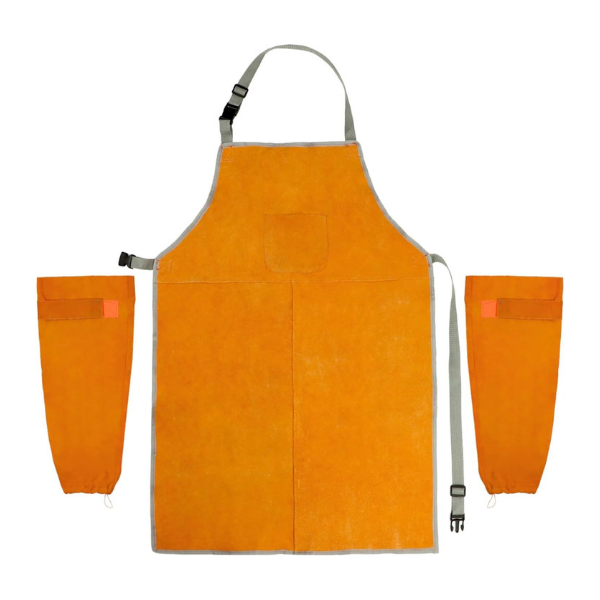 QWORK Welding Apron& Sleeves, Welding Work Protectors Set, Heat and Flame Resistant Leather Work Shop, Blacksmith Protective or Safety Clothing, Welders, Fireplace, Gardening, BBQ Apron, Bib Apron