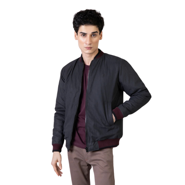 An everyday jacket with warmth, our charcoal bomber jacket is made with water resistant fabric & quilted inner to keep you warm throughout winters. It features a zip front, side pockets, baseball collar with contrasting ribbed cuffs & hem. This charcoal quilted bomber jacket is definitely a statement piece to own.