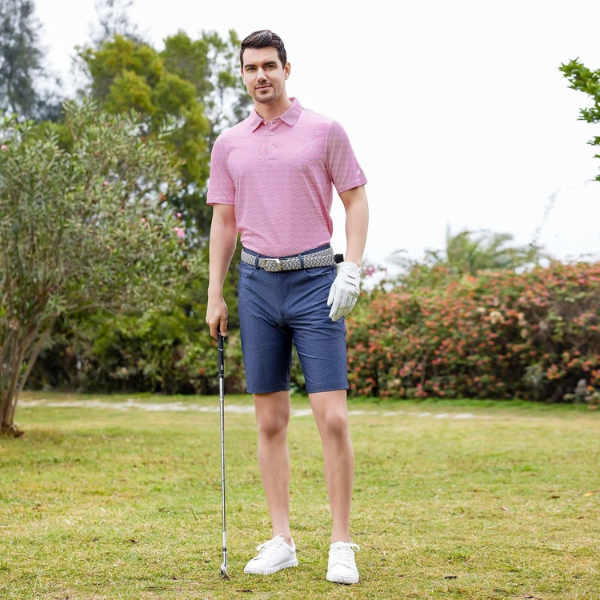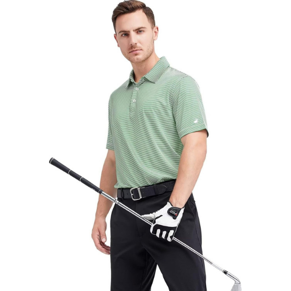 Mens Golf Shirt Moisture Wicking Dry Fit Performance Sport Short Sleeve Striped Golf Polo Shirts for Men