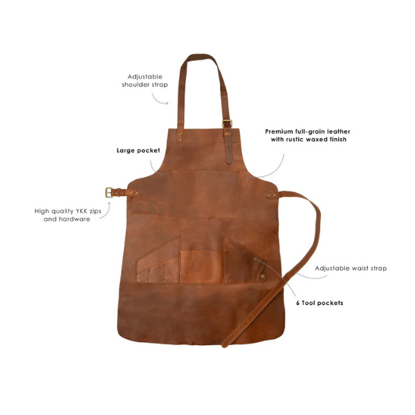 Multi-Pocket Leather Apron – Brown